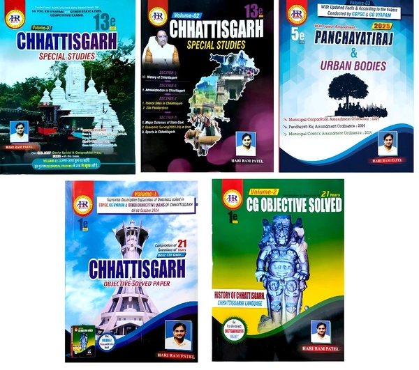 05 Books Set : Chhattisgarh Special Studies 2025 (Vol- 1 & 2) + Panchayati Raj And Urban Bodies + Chhattisgarh Objectives Solved Paper 2025 | HR PUBLICATION