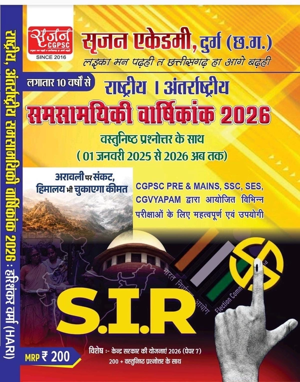राष्ट्रीय एवं अंतरराष्ट्रीय समसामायिकी वार्षिकांक 2026 (वस्तुनिष्ठ प्रश्न उत्तर के साथ) | सृजन एकेडमी
