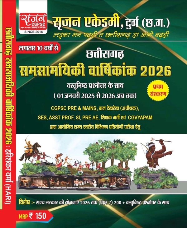 छत्तीसगढ़ समसामयिकी वार्षिकांक 2026 (वस्तुनिष्ठ प्रश्नोत्तर के साथ) | सृजन एकेडमी