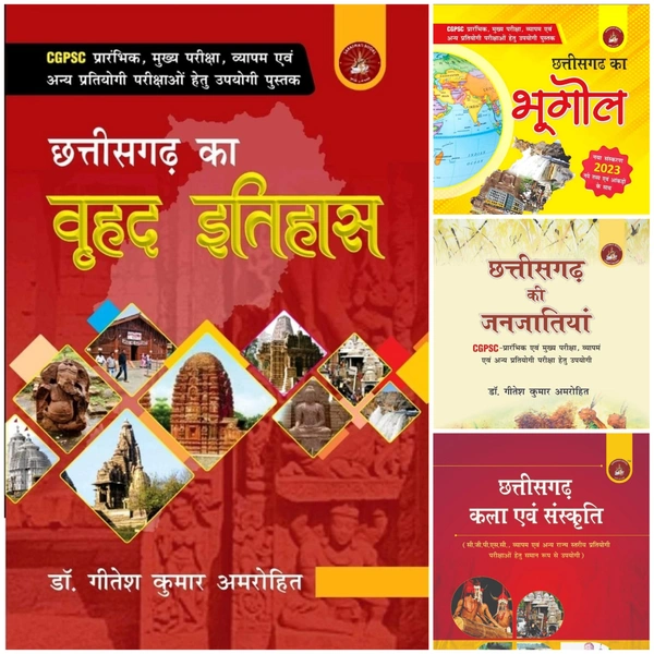 4 Combo Books Set : छत्तीसगढ़ इतिहास, छत्तीसगढ़ भूगोल, छत्तीसगढ़ जनजाति और छत्तीसगढ़ लोक कला एवं संस्कृति | डॉ. गीतेश कुमार अमरोहित